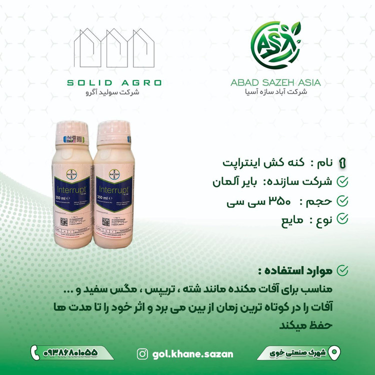 ⭕️حشره کش اینتراپت با تأثیر سریع و ماندگار، این آفات را بهطور مؤثر کنترل میکند و از خسارات بیشتر جلوگیری مینماید.