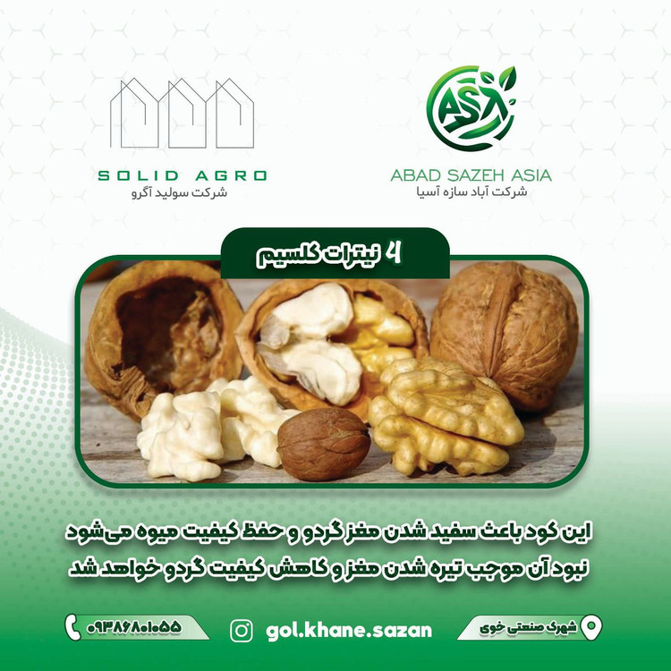 ⭕️یکی از کودهایی که برای سفید شدن مغز گردو بسیار موثر است نیترات کلسیم است که اگر درخت گردو فاقد این کود باشد از کیفیت میوه تولید شده بسیار کاسته می شود و رنگ مغز گردو سیاه خواهد شد از این رو برای سفید تر شدن مغز گردو و نیز ممانعت از سیاه شدن مغز گردو حتما کود نیترات کلسیم را به موقع و به میزان کافی در اختیار درختان گردو قرار دهید.