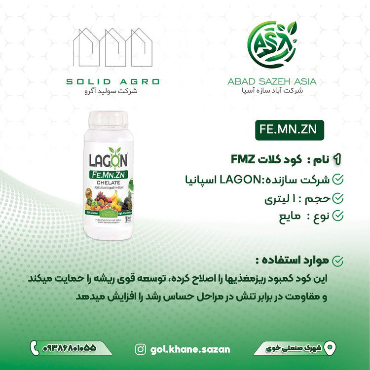 ⭕️کلات آهن FMZ محصولی تخصصی از شرکت LAGON اسپانیا است که بهمنظور تأمین مؤثر عنصر حیاتی آهن (Fe) برای گیاهان تولید شده است.