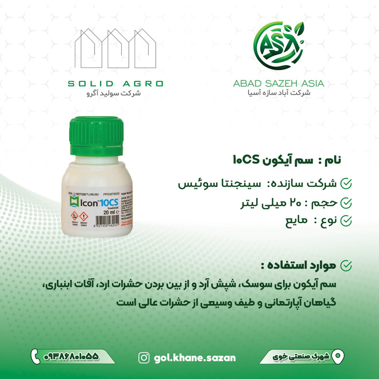 🔴سم آیکون ۱۰ CS (Icon 10% CS) یکی از حشرهکشهای شناختهشده در کشاورزی و بهداشت عمومی است. این سم با مادهی مؤثرهی لامبدا سایهالوترین (Lambda-Cyhalothrin) ساخته میشود و در گروه پیرتروئیدهای مصنوعی قرار دارد.