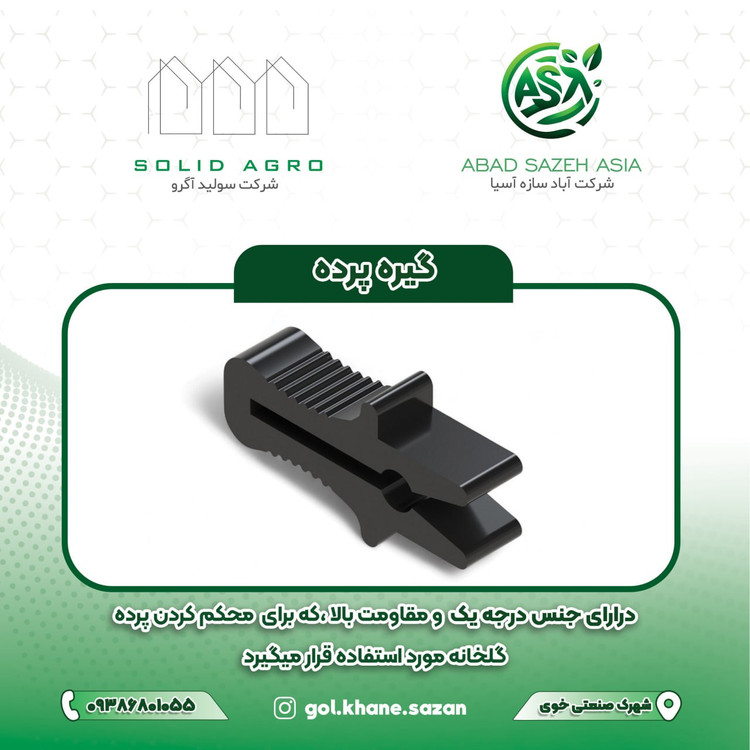 گیره پرده قطعهای است که پرده شید گلخانه را به سیم هدایتگر (سیم پلیاستر یا سیم بکسل) متصل میکند و اجازه میدهد پرده بهراحتی روی سیم حرکت کند