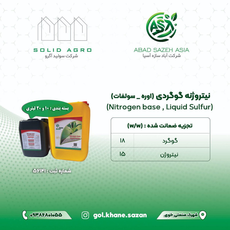 کود نیتروژنه گوگردی مایع یک کود حاوی نیتروژن و گوگرد است که به منظور افزایش رشد رویشی، بهبود فرآیندهای متابولیکی و اصلاح pH خاک در کشاورزی استفاده میشود. این کود به تسریع فتوسنتز و تولید کلروفیل کمک کرده، مقاومت گیاه را در برابر استرسهای محیطی افزایش میدهد و جذب سایر عناصر مغذی را تسهیل میکند.