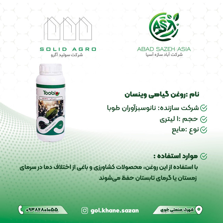 📌"با روغن گیاهی وینسان از شرکت آباد سازه آسیا، نه تنها آفات را شکست میدهید، بلکه به گیاهان خود زندگی دوباره میبخشید؛ چون هر رشد سالم، شروع یک موفقیت بزرگ است!"👌