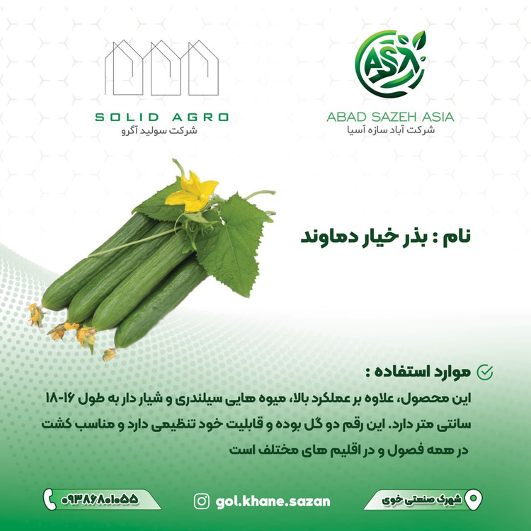 📌"خیار دماوند با طراوت بینظیرش، نشانهای از طبیعت پاک و خالص است؛ همانطور که شرکت آباد سازه آسیا با تعهد و تخصص، پایههای ساختن آیندهای سبز و پایدار را مستحکم میکند."👇🏻