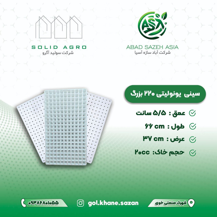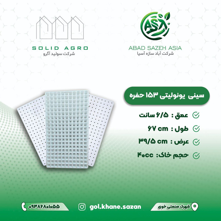 ⭕️در کشاورزی، ابزارهایی تحت عنوان سینی نشاء وجود دارند که بستر اصلی کاشت نشاء محسوب میشوند. سینی نشاء یونولیتی دستهای از سینیهای نشاء است که جنس یونولیتی دارند.