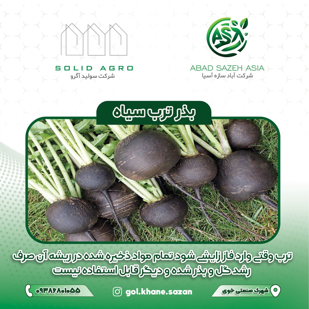 📌شرکت آباد سازه آسیا با بهرهگیری از دانش روز، در توسعه گلخانههای مدرن برای کشت محصولات ارزشمندی مانند ترب سیاه نقش مؤثری ایفا میکند👌🏻