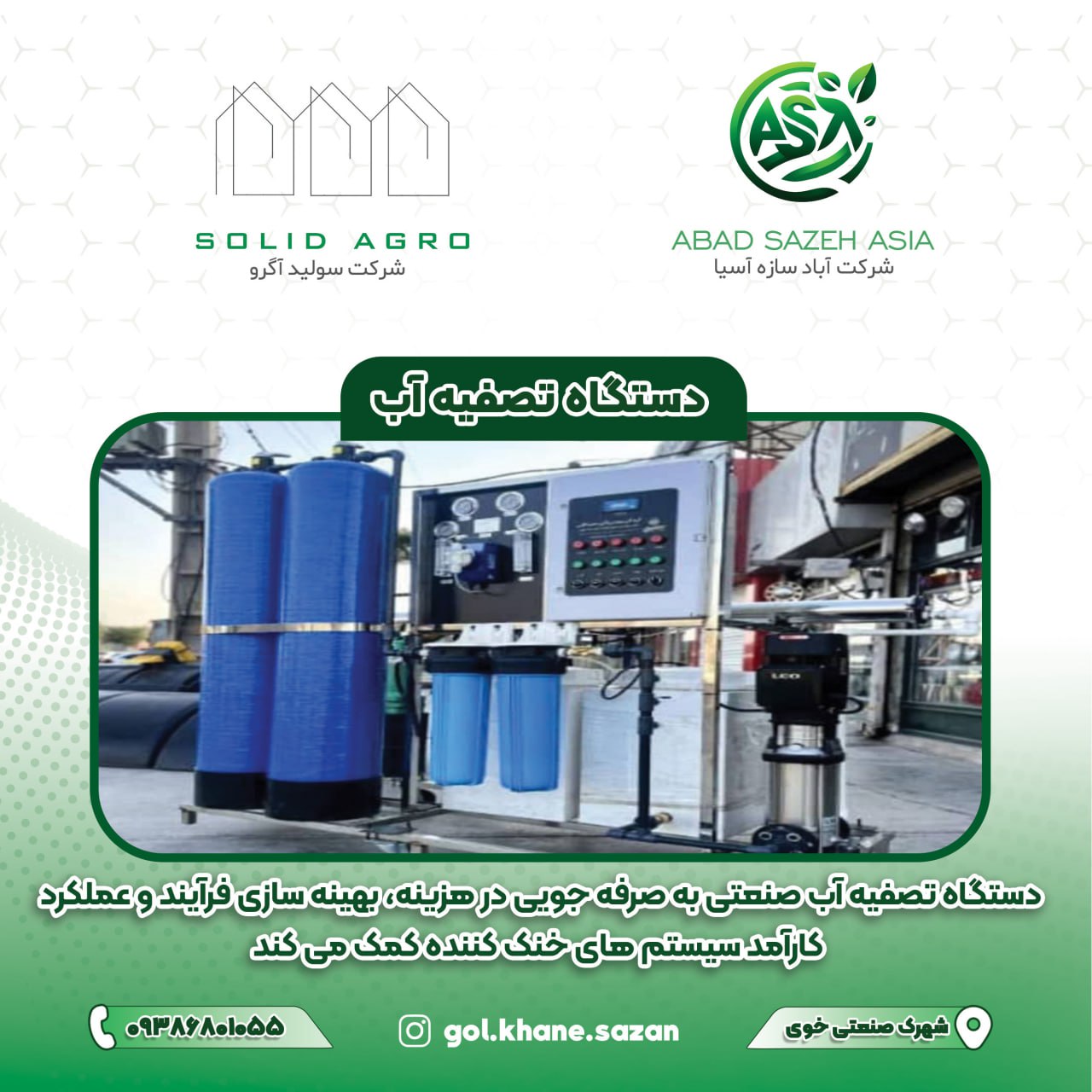 📎دستگاه تصفیه آب صنعتی، ابزاری ضروری برای کشاورزی نوین است. بدون آب مناسب، نه خاک جواب میدهد، نه بذر. شرکتهایی مانند آباد سازه آسیا با دانش فنی و تجربه میدانی، مسیر شما را برای داشتن تولیدی سالم و پر سود هموار میکنند🌱