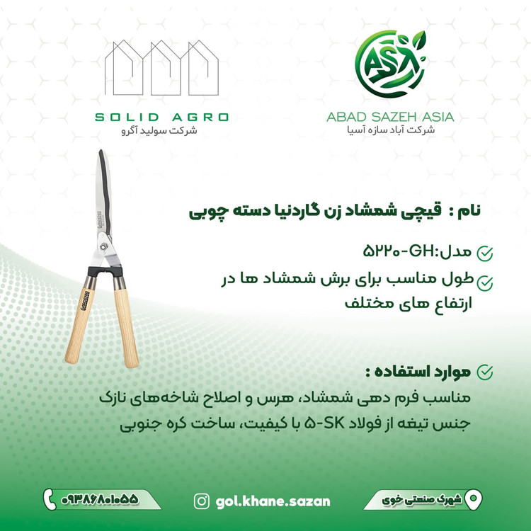 ✔️اگر به دنبال قیچی شمشاد زن با طراحی سنتی، کیفیت بالا و عملکرد دقیق هستید، مدل GH-5220 با دسته چوبی انتخابی عالی خواهد بود.