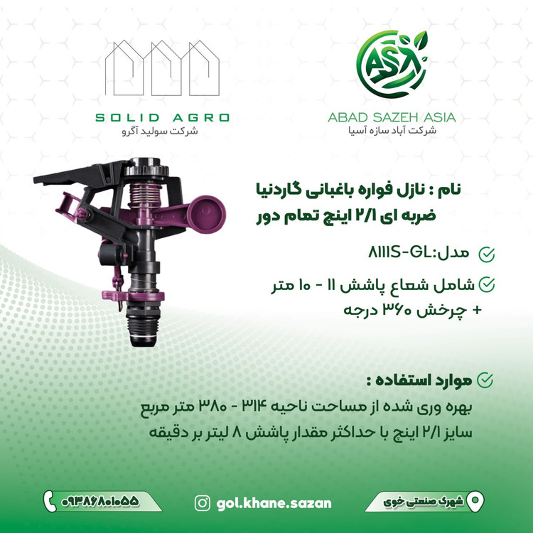 ✔️قابلیت تنظیم زاویه پاشش: برای کنترل محدوده آبیاری