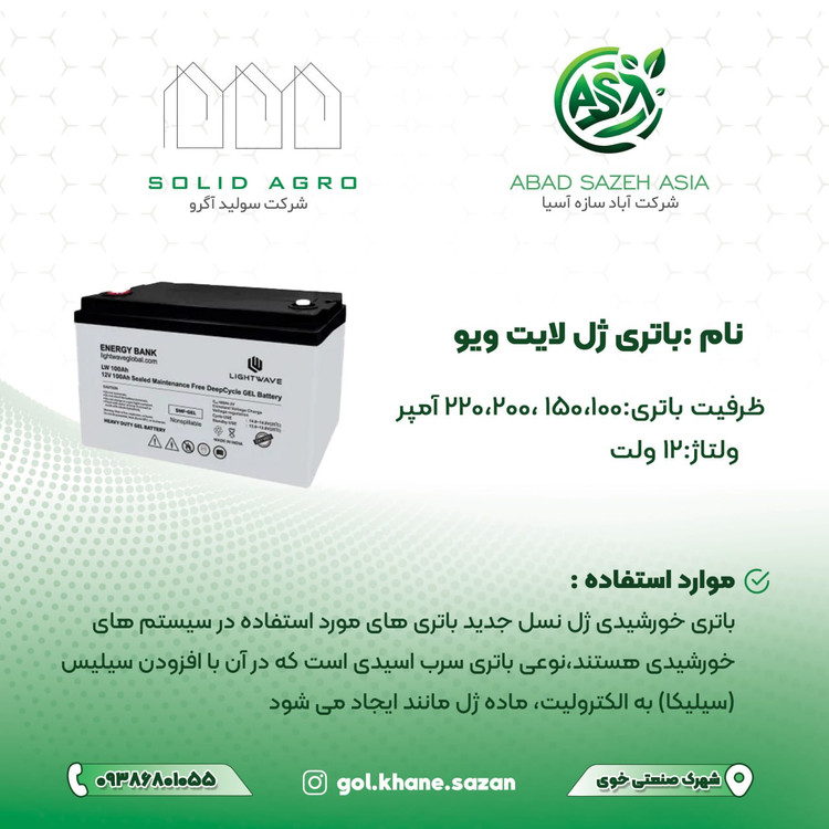 باتری ژل لایت ویو 12 ولت آباد سازه آسیا