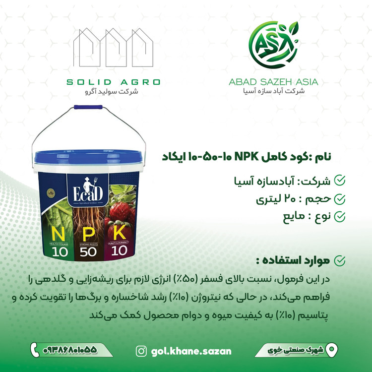 کود کامل 10-50-10 مایع 20 لیتری ایکاد